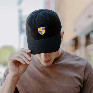 Show your SAE pride in style with these sleek, embroidered caps! Available in both black and white, each hat features Sigma Alpha Epsilon's distinctive shield prominently displayed on the front. The shield's rich purple and gold colors pop against either background. Comfortable, durable, and perfect for everyday wear, these caps are a must-have for brothers and alumni alike.
