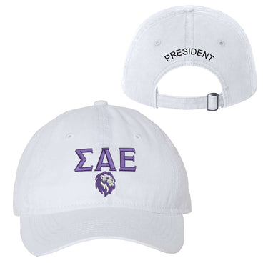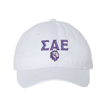 The SAE Lion Legacy Hat is a stylish and meaningful accessory designed for members and supporters of the Sigma Alpha Epsilon (SAE) fraternity. This classic ball cap features the iconic SAE Greek letters embroidered in bold purple, accompanied by a striking lion emblem that symbolizes the fraternity's legacy and values. Crafted with comfort and durability in mind, this hat is perfect for showcasing your Greek pride while adding a touch of sophistication to any casual outfit. Whether you're attending a fraternity event or simply enjoying a day out, the SAE Lion Legacy Hat is a must-have for any SAE brother or alumnus.