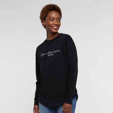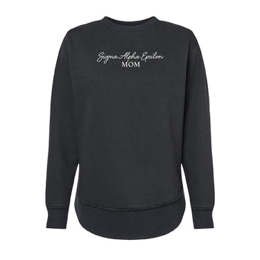 Featuring a elegant curved hem design and the classic "Sigma Alpha Epsilon MOM" lettering, this crewneck is a must-have for any mom who wants to show her love and support. The soft, high-quality fabric ensures both style and comfort, making it ideal for casual wear or fraternity events.