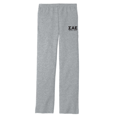 Made from a soft, midweight cotton-blend fleece, these pants feature a relaxed, straight-leg fit with a flexible elastic waistband and no side seams - giving you that clean, classic look with max comfort. The left leg is decorated with the Sigma Alpha Epsilon established year, paying homage to the legacy of your fraternity in a minimalist, modern way.