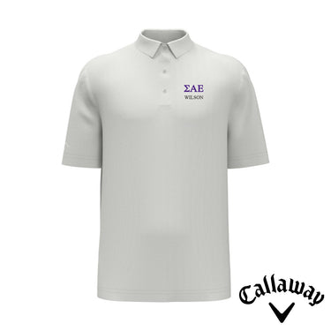 Stay cool and stylish on the golf course with the SAE White Callaway Greek Letter Golf Polo. Your Greek letters are embroidered in a contrasting color on the left chest, showing your Sigma Alpha Epsilon pride. Whether you're hitting the course for a relaxing weekend round or an intense tournament this polo keeps you comfortable from the first tee to the final putt.