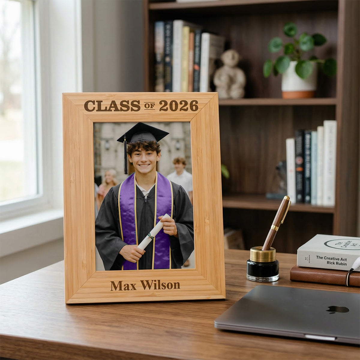 Celebrate one of life’s biggest milestones with a Personalized Graduation Picture Frame designed to honor your graduate in a meaningful, lasting way. Crafted from premium bamboo and precision laser-engraved, this 4x6 frame turns a proud moment into a timeless keepsake.